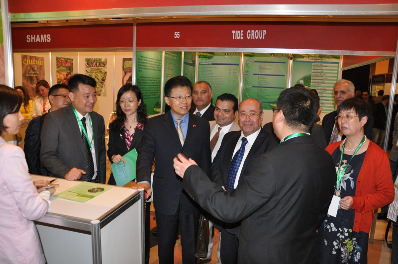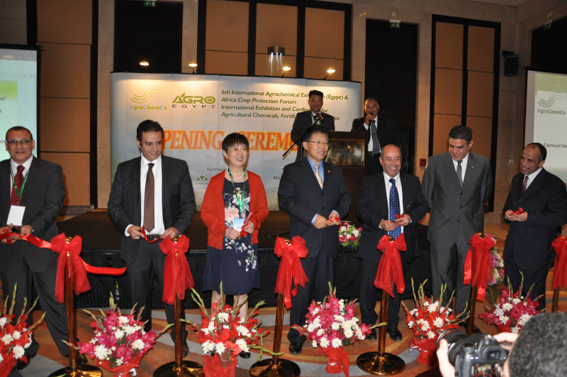 由中國農藥工業協會、中國化工信息中心聯合主辦的第六屆國際農化展覽會(埃及)暨非洲植保高峰論壇活動,在埃及農業部及中國駐埃及大使館的大力支持下,于2015年3月30日在埃及開羅正式拉開帷幕。出席本次開幕式的嘉賓包括中國駐埃及大使館公參韓兵先生,埃及農業與土地開墾部農藥委員會副主席Dr. Mustafa Abdel Sattar Hammad, 埃及化工品和化肥出口協會主席Mr. Waleed Helal,埃及工業和貿易部食品和農業技術中心Dr. Amgad A. El-Kady,聯合國糧農組織官方專家Mr. Mikhail Malkov 和中國農藥工業協會秘書長李鐘華。開幕式結束后,中國使館的韓公參與埃及農藥委員會Mustafa副主席等嘉賓在主辦單位的陪同下,參觀中國企業展臺,與展商親切交流并合影留念。