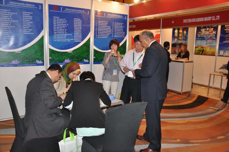 本次展覽共有來自中國的26家企業, 埃及22家企業以及印度的2家企業, 其中包括埃及農化行業的知名大企業SHOURA和EUFCO等,參展商超過150人。展會在埃及為農化企業搭屬專業貿易平臺,廣泛吸引埃及農業從業人員和貿易商前來參觀,展會首日專業觀眾384人,展會現場客商絡繹不絕,氣氛熱烈。