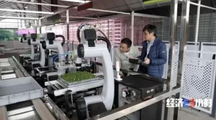 在這家蔬菜基地,一臺全自動機器人移栽設備正在將育成的幼苗通過機械轉移到定植箱內,完成移栽。剛育好的幼苗又矮又小,十分脆弱,以前這部分移栽工作必須靠人工完成,經過這次技術升級后,可以用機械設備完全替代人工。原本需要四個小時才能完成500盤的播種育苗過程,如今僅需一個小時就可以完成。幾個月后,從播種到采收,這個蔬菜基地將全部實現無人化操作。