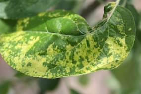 蘋(píng)果花葉病主要表現(xiàn)在葉片上,由于蘋(píng)果品種的不同和病毒株系間的差異,可形成以下幾種癥狀,有的癥狀與缺素癥相似。