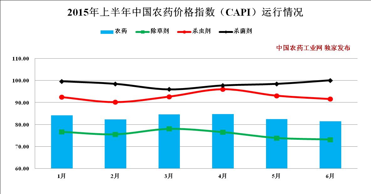 圖1 2015年上半年中國農(nóng)藥價格指數(shù)(CAPI)運行情況