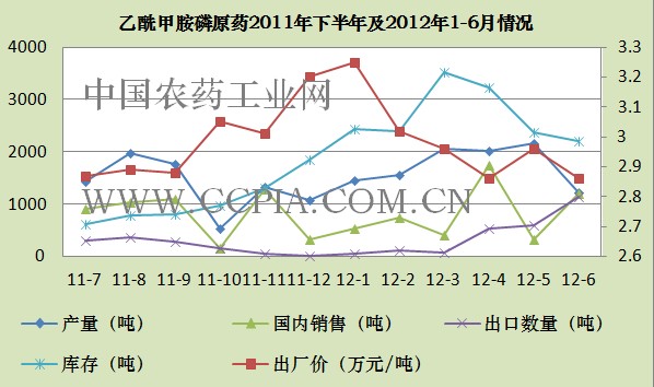 據中國農藥工業網統計的11家乙酰甲胺磷原藥生產企業, 2012年5月份開工企業為5家,6月份開工為4家。