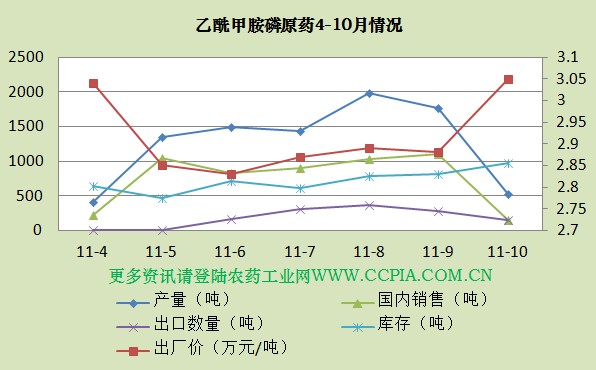 據農藥工業網統計的11家乙酰甲胺磷原藥生產企業, 9月份開工企業為5家,10月份開工為3家。