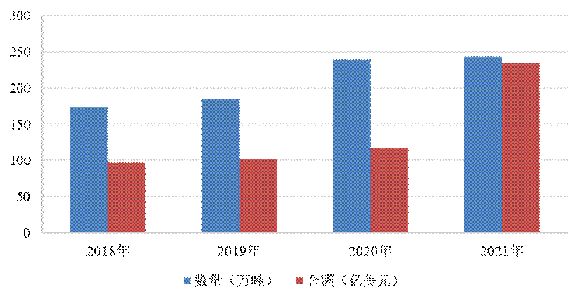 近三十年來,我國農藥出口呈現三個階段。一是20多年的快速發展期。從上世紀九十年代直到2014年,農藥國際貿易從逆差轉化為順差,到2014年達到94億美元。二是2014-2016年的調整期。受到國家供給側結構性改革影響,我國農藥出口額從2014年的94億美元下降到2016年的67億美元。三是2016年之后又進入新的增長期。農藥出口逐年上升,2018年出口數量有所減少,但由于國內產品結構的迅速改善,高活性高附加值產品占比大幅上升,出口金額不降反增,首次實現了農藥出口從數量增長向效益增長的歷史性轉變。2019年起,我國農藥出口額破百億美元,2020年出口額達到117億美元,2021年受國際經濟形勢影響,出口額翻倍,達到234億美元,也從側面反映了我國農藥行業整體基礎雄厚、地位穩固,印證了產業升級換代和技術改進提質的顯著成效。