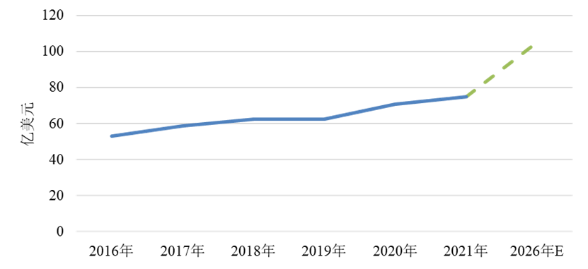 氨基酸類除草劑2016年經歷了近年來的銷售額低谷,2016年后迅速恢復增長,2021年銷售額74.84億美元,同比增長5.7%,略低于當年除草劑整體增長速度,2016-2021年復合增長率7.1%,遠高于除草劑行業的3.4%,據預計,未來5年氨基酸類除草劑復合增長率或將達到7.0%,2026年銷售額或超過100億美元。