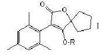 本發明涉及一種螺環季酮酸類化合物及其合成方法與用途,該螺環季酮酸類化合物的結構如通式Ⅰ所示。其合成方法為在縛酸劑存在下,于非質子性溶劑中,在0~50℃下使結構式為Ⅱ的化合物與結構式為R-Cl的化合物反應、分離制得。本發明的螺環季酮酸類化合物可用于殺蟲或殺螨ⅠⅡ。
