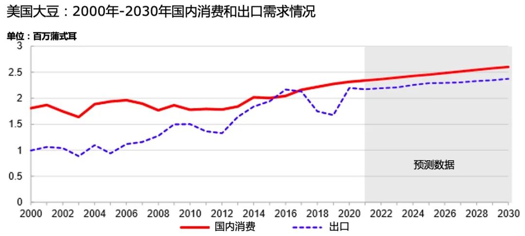 每年2月中下旬,美國農業部首席經濟師辦公室(OCE)都會發布關于未來十年的農業展望報告,基于對全球宏觀經濟、農業生產力和貿易政策的預設,對全球農產品供需、貿易及價格等指標的走勢進行預估。本文選取了今年剛剛發布的報告中與大豆產業相關的部分,展望至2030年的產業發展趨勢。
